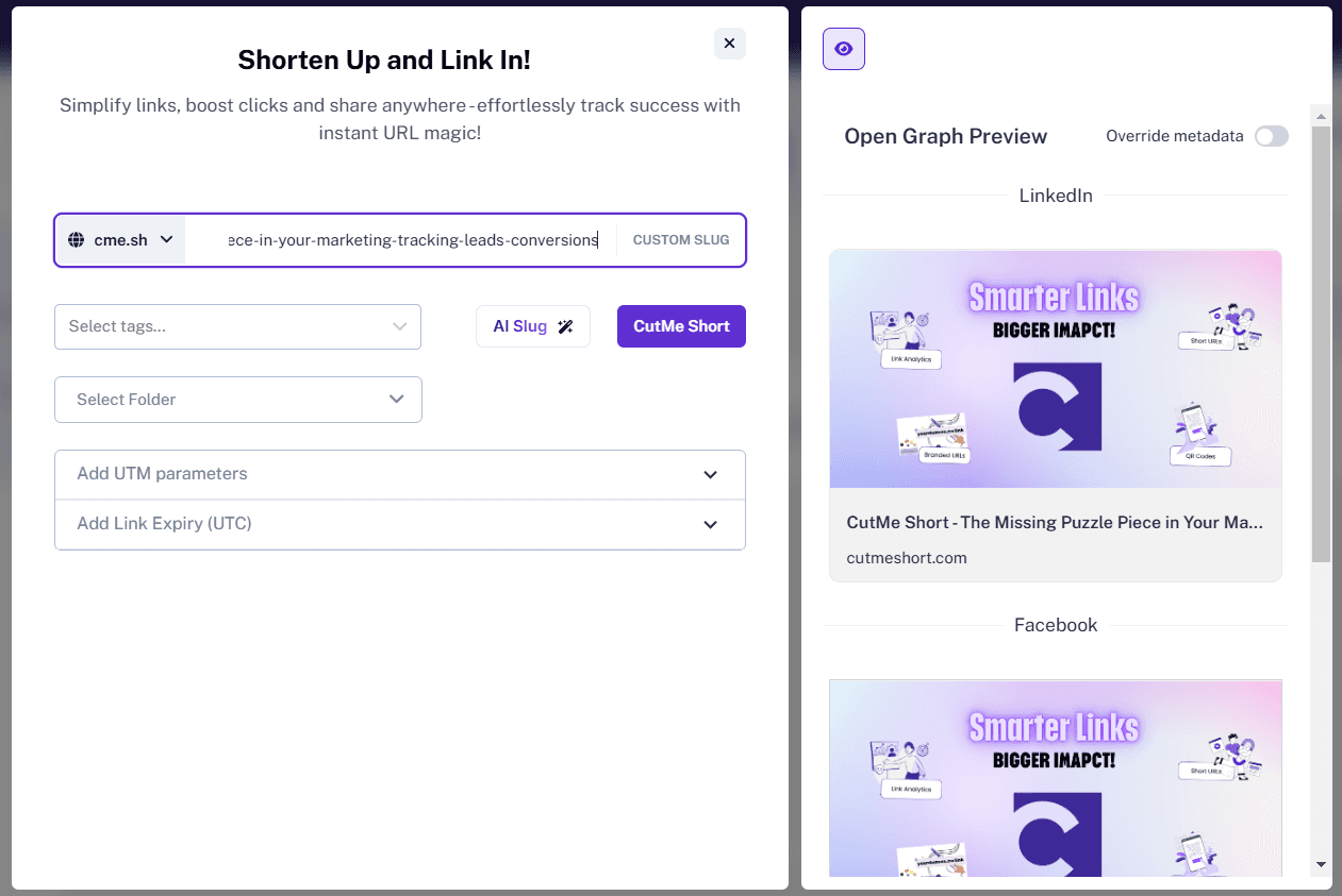 CutMe Short allows you to modify these elements to create a tailored and professional link preview.