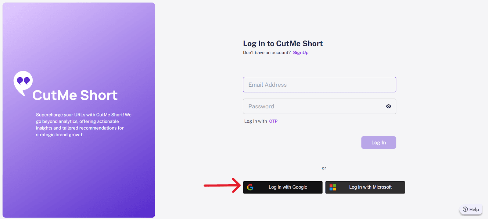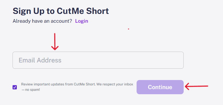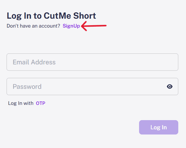 Go to CutMe Short and if you don’t have an account you’ll need to click on 'Sign Up'.