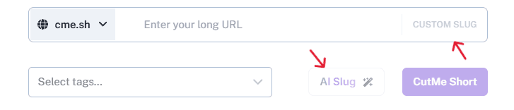 CutMe Short allows you to add a custom alias to your link. Instead of a random string of characters, you can create a memorable link, such as ‘https://cme.sh/YourBrand’. You can also create an AI generated slug for your short link. This feature is particularly useful for branding purposes.