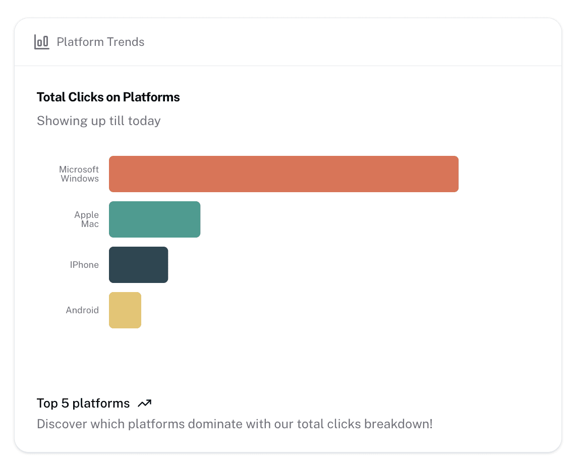 Total Clicks on platforms: It shows the breakdown of top 5 major platforms from where our link has got more number of clicks.