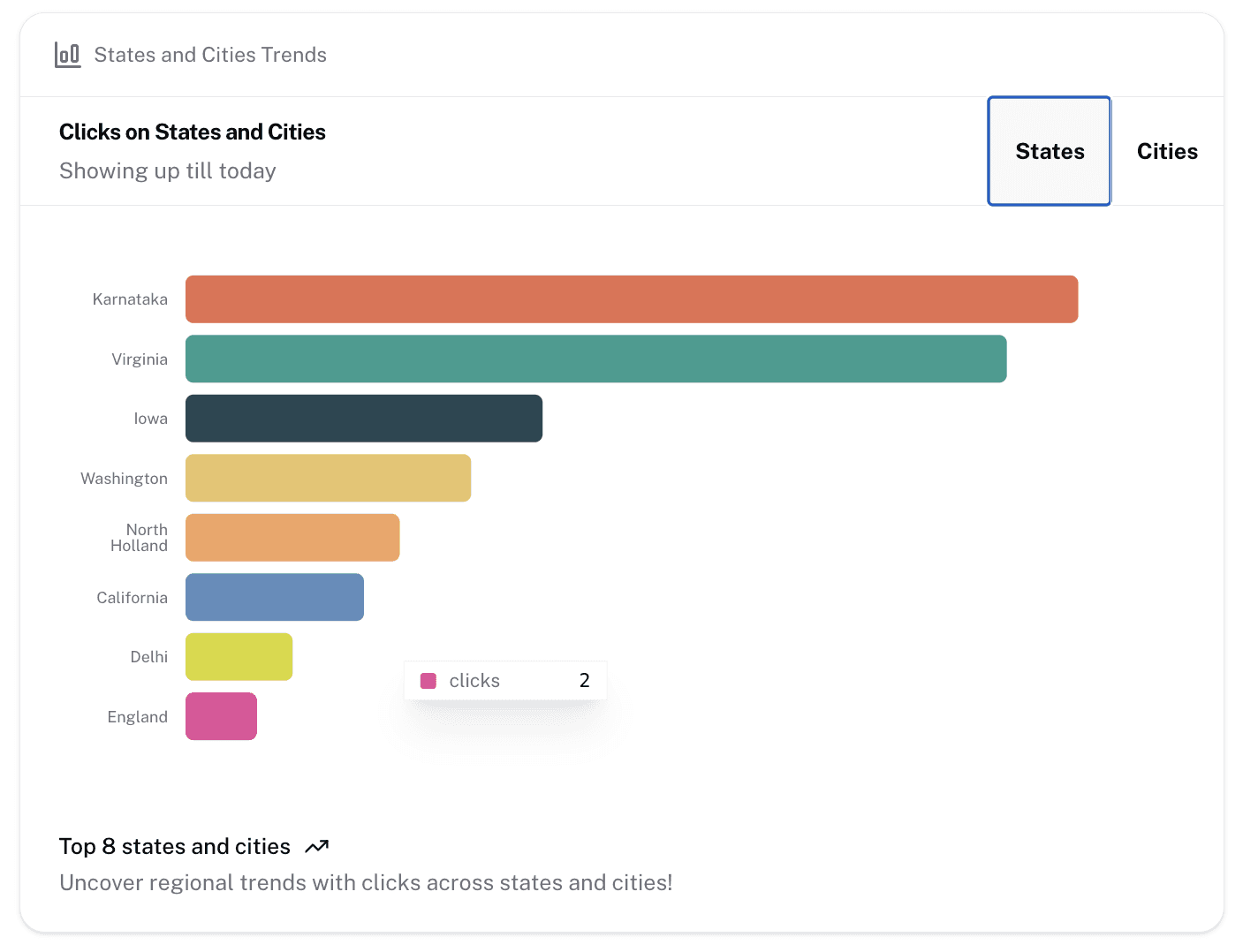 Weekly Clicks Trend: This metric helps you track week-over-week changes in engagement, identify successful strategies, and adjust your content or marketing efforts accordingly.