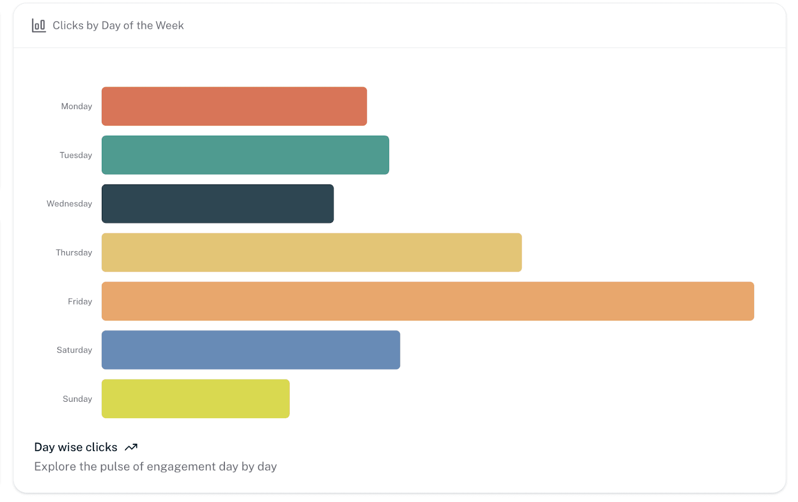 Day-Wise Clicks Trend: This metric helps you identify trends in audience behavior, allowing you to optimize your posting schedule and maximize click-through rates. Consistently high clicks on specific days can guide strategic planning for promotions and content releases.