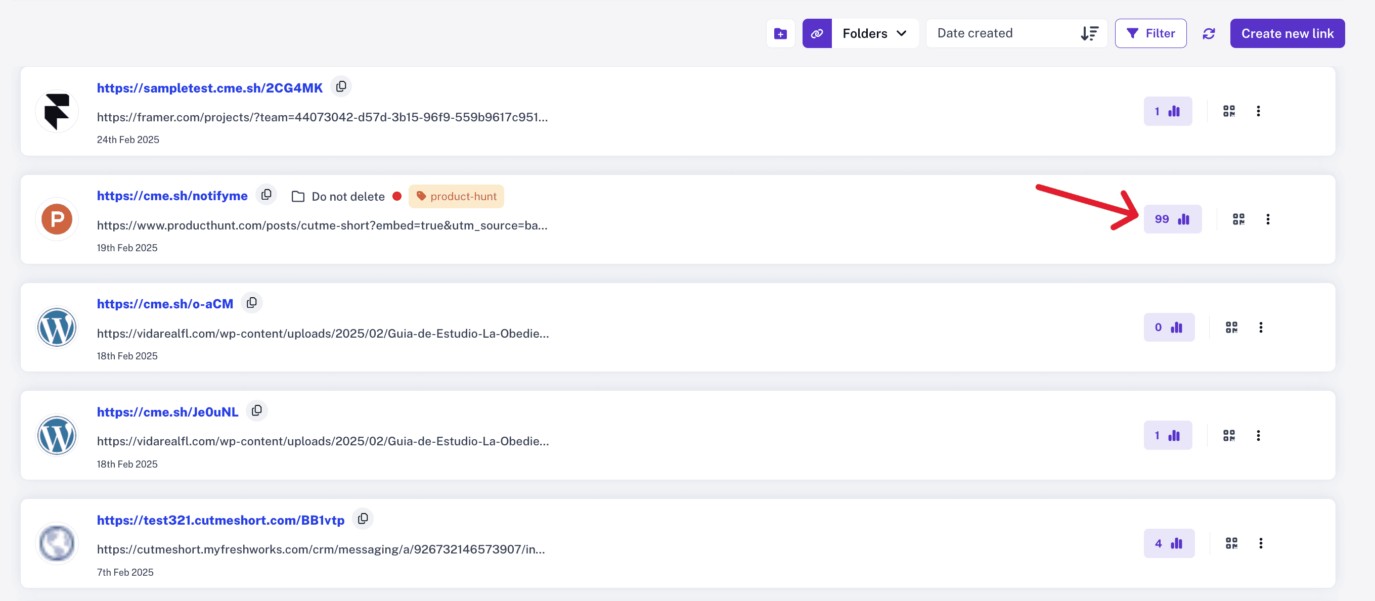 Here, you’ll find a detailed overview of your link’s performance.