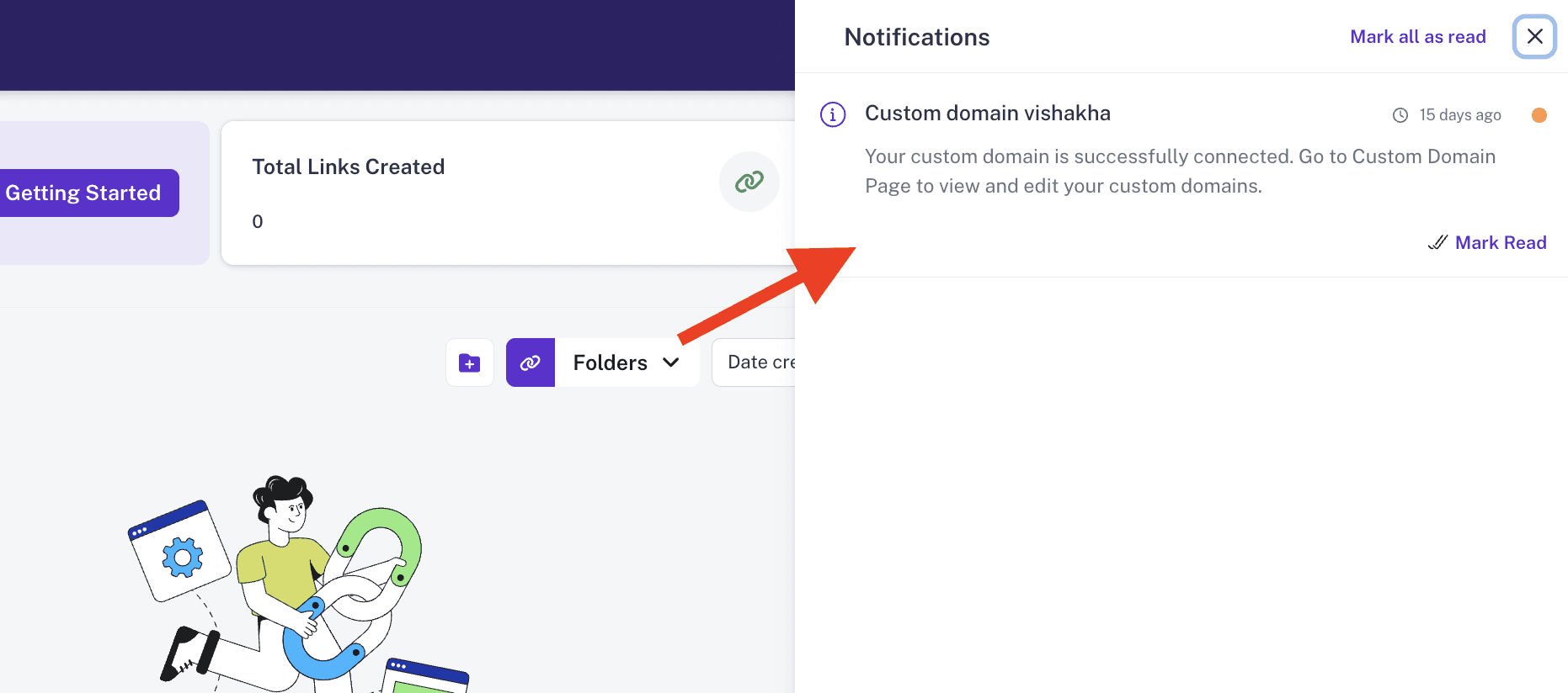 For System Notifications – Click the bell icon on the top-right corner to see alerts related to your account, plan usage, and domain status.