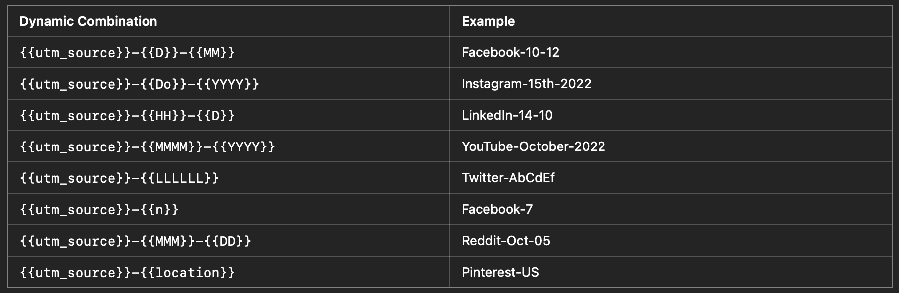One of the best aspects of dynamic UTM parameters is the ability to create custom combinations for campaign names or content tags.